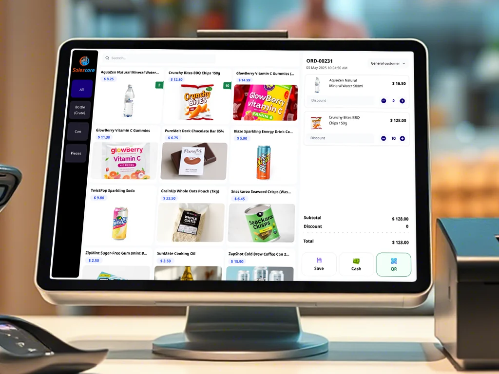 To support retail operations at your depots and warehouses, we’re introducing the SalesCore Point of Sale (POS) interface — purpose-built to handle walk-in customers efficiently. Whether it’s a quick invoice, real-time stock check, or direct order fulfillment, our POS system integrates seamlessly with your existing SalesCore setup to streamline counter sales and improve service speed.