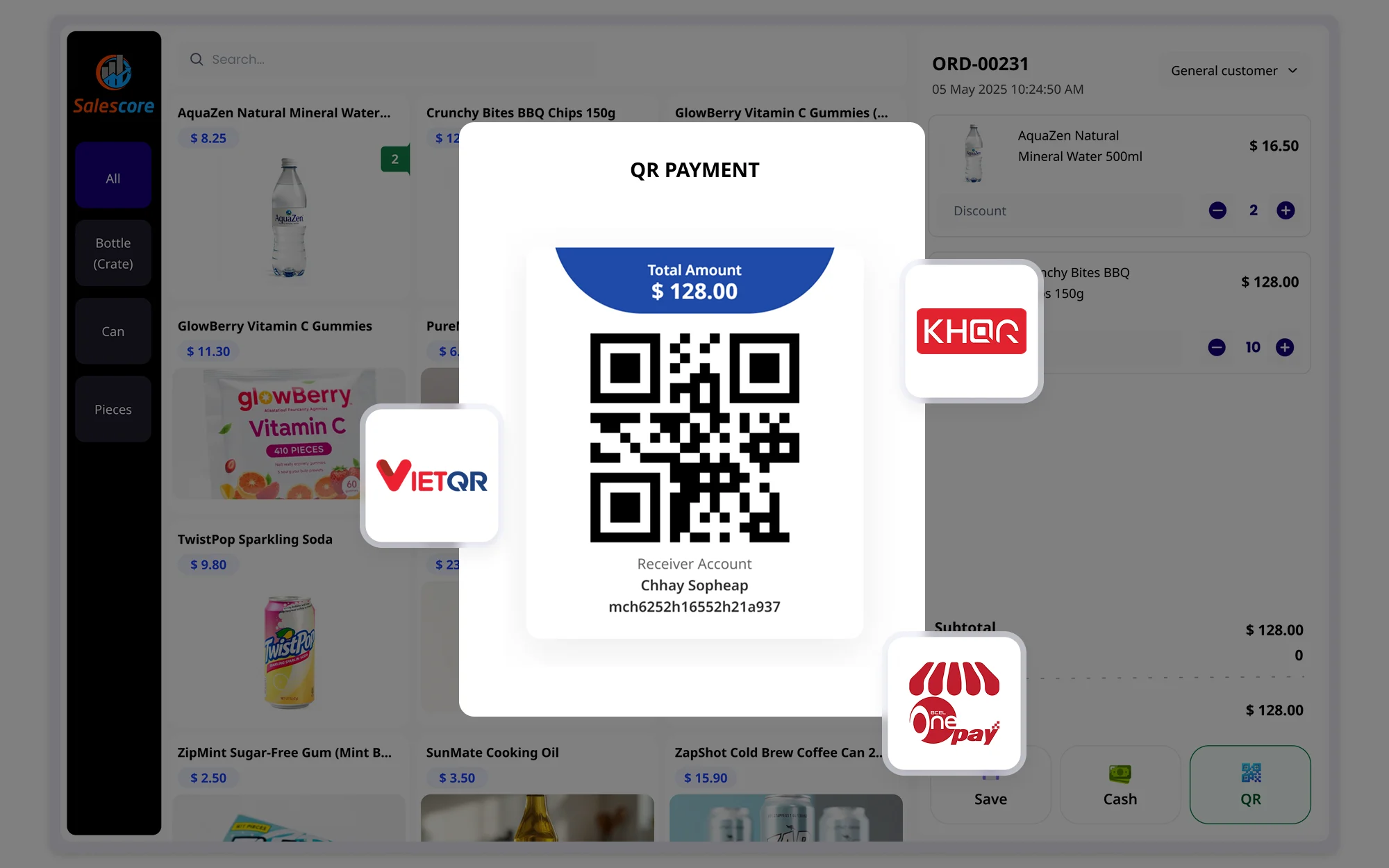 Simply select the digital payment option during checkout and let the customer scan the QR code to complete the transaction — fast, secure, and fully synced with your SalesCore system.